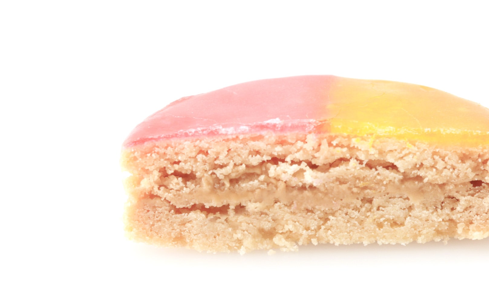 2色のジャムが可愛らしいレモン風味のコンフェクトでプラリネマスクリームをサンドしています。
