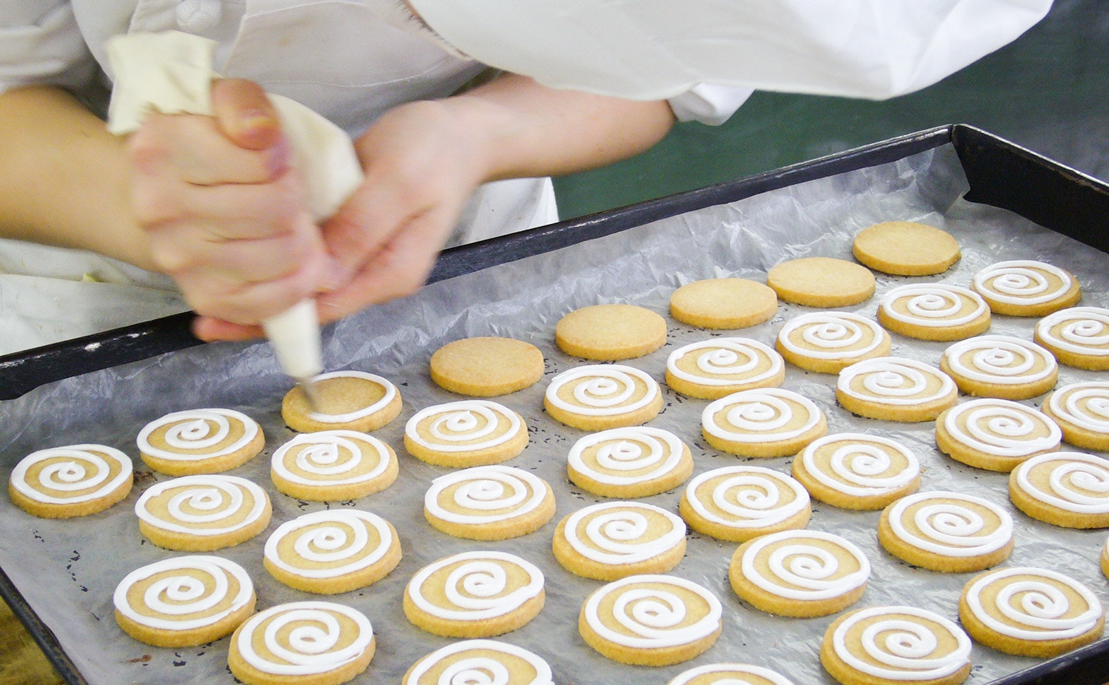 密閉度の高いオーブンで水分を逃がさないように焼きあげることで、しっとりとしたクッキーができあがるのです。