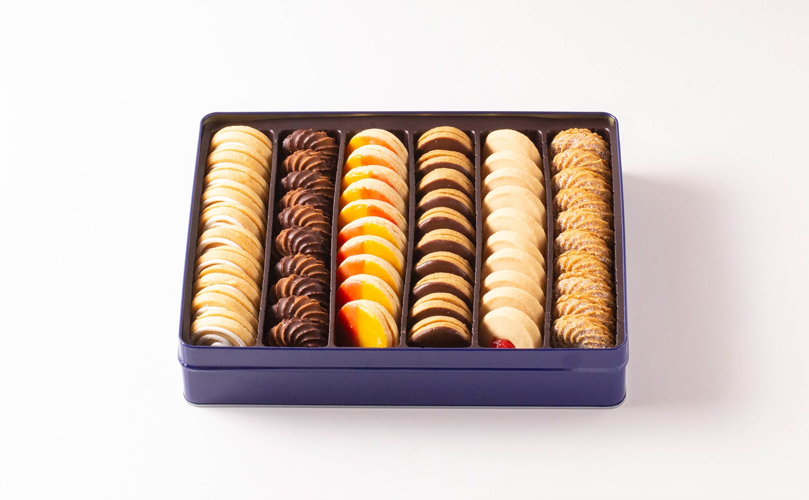 上品な缶に入ったクッキーは、贈り物にもぴったりです。