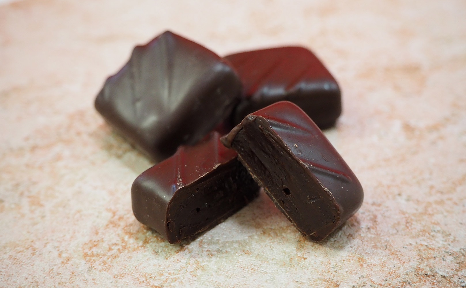 深香は、エレガントな苦味と持続性のある香りが特徴のグアナラ70%ダークチョコレートの濃厚な味わいを、力強くしっかりとした風味の滑らかなガナッシュでご堪能下さい。苦味のバランスが絶妙です。