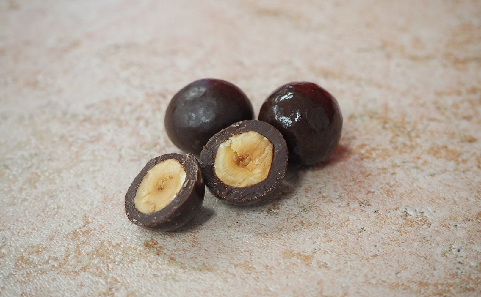 彩香は、ローストしたヘーゼルナッツをダークチョコレートでコーティングしました。サクサクとした食感、ローストしたドライフルーツのような香りが特徴です。