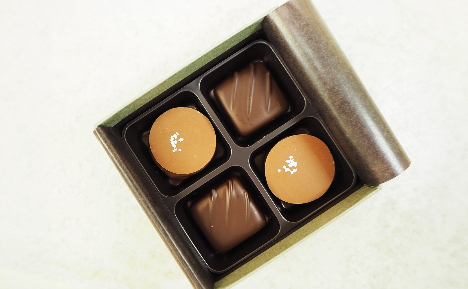 ミルクとブラックチョコレートが織りなす、なめらかな口どけが魅力です。