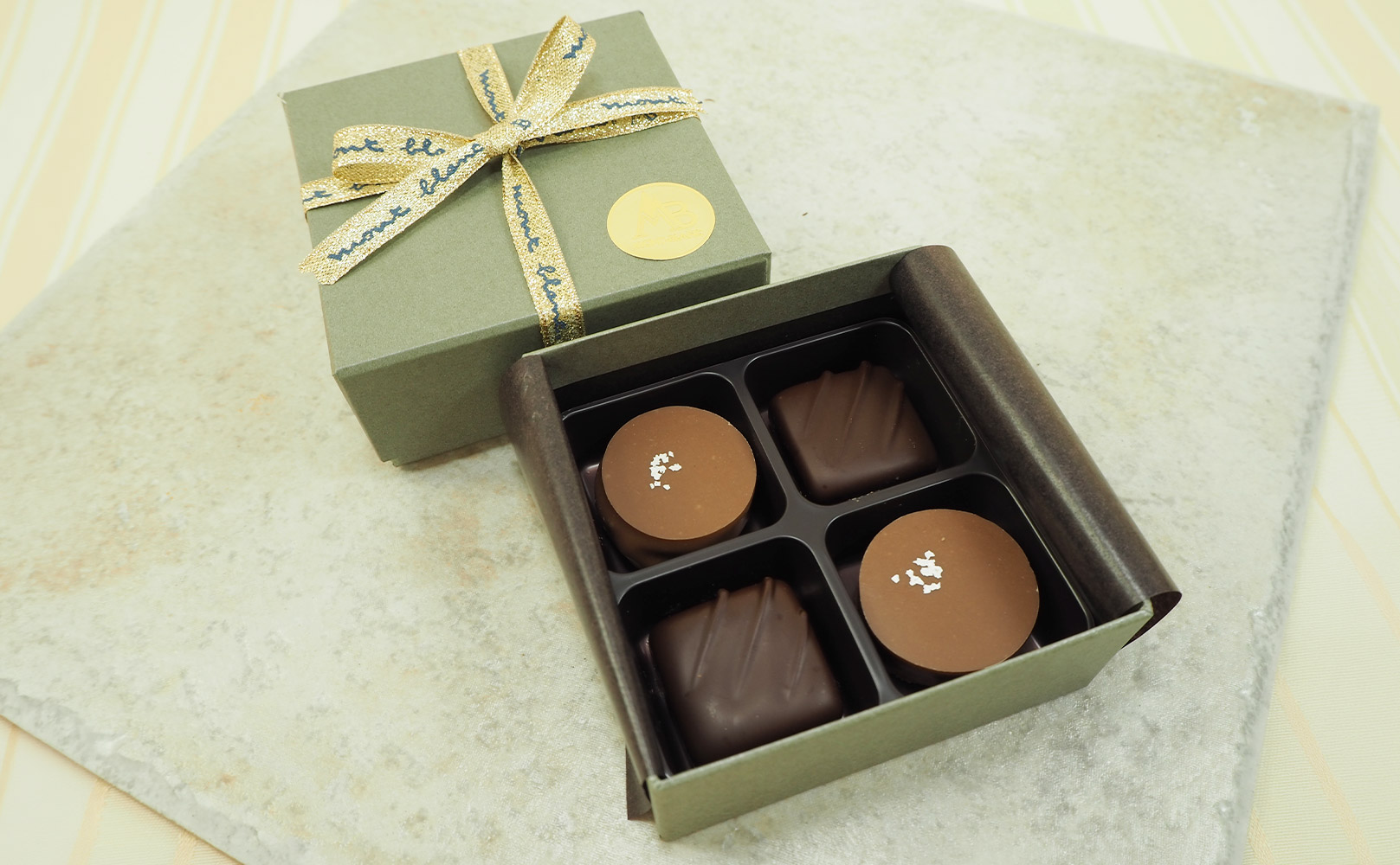 深香は、エレガントな苦味と持続性のある香りが特徴のグアナラ70%ダークチョコレートの濃厚な味わいを、力強くしっかりとした風味の滑らかなガナッシュでご堪能下さい。苦味のバランスが絶妙です。