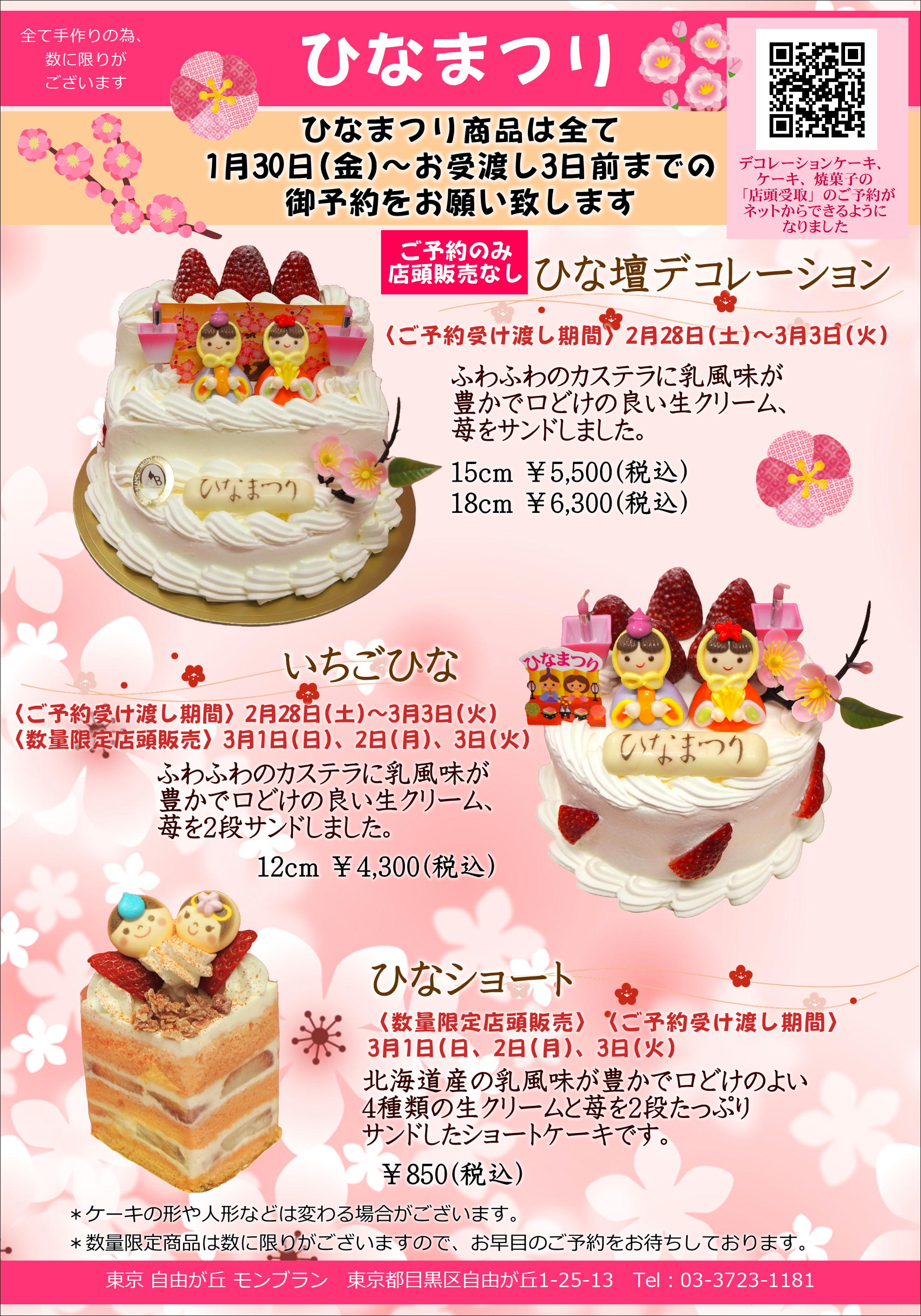 当日のお電話でのケーキのお取り置きは承れません。